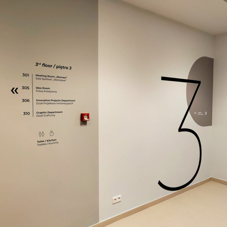 – Realizujemy zarówno oznaczenia zewnętrzne, jak i systemy oznakowania wewnętrznego – od logotypów, przez panele informacyjne, po pełne systemy nawigacyjne.
